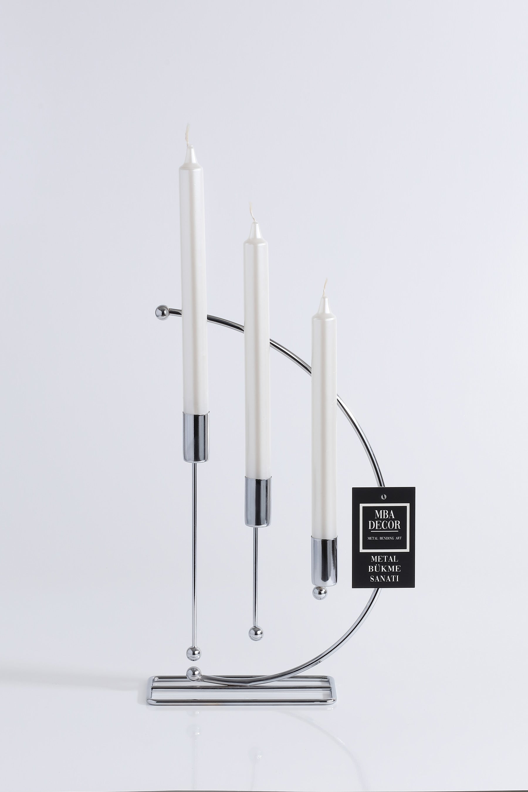 Nota Set 3 Suporturi Lumanari Metal Argintiu – Design Elegant